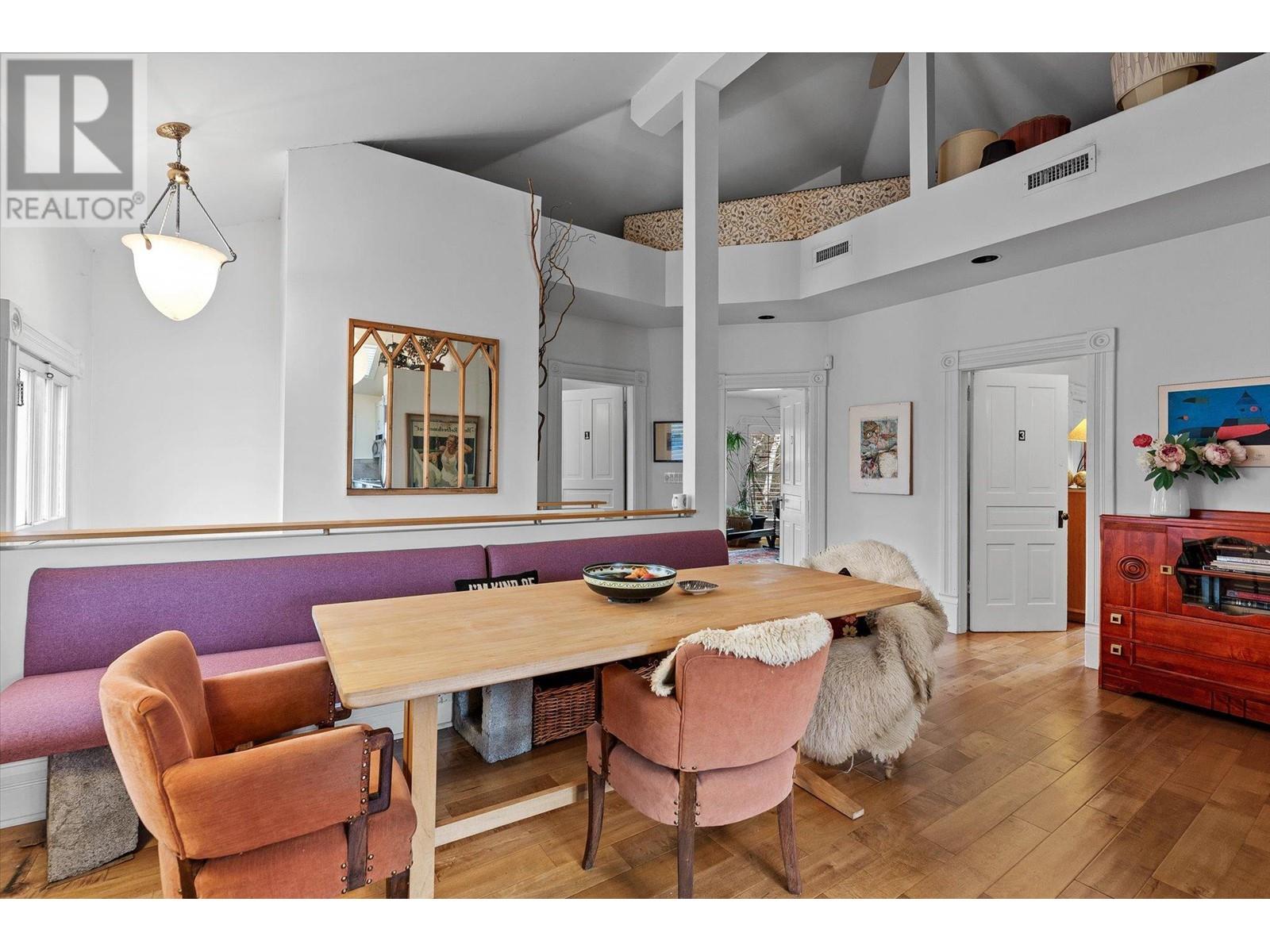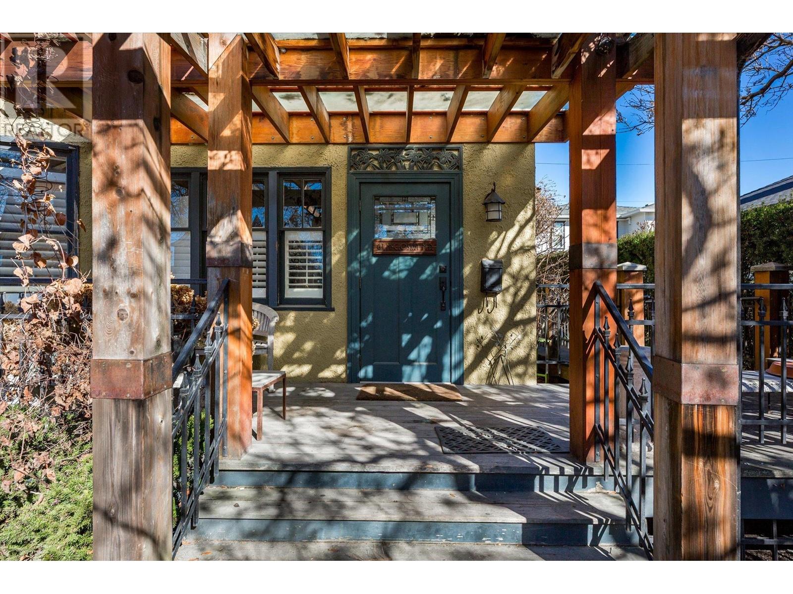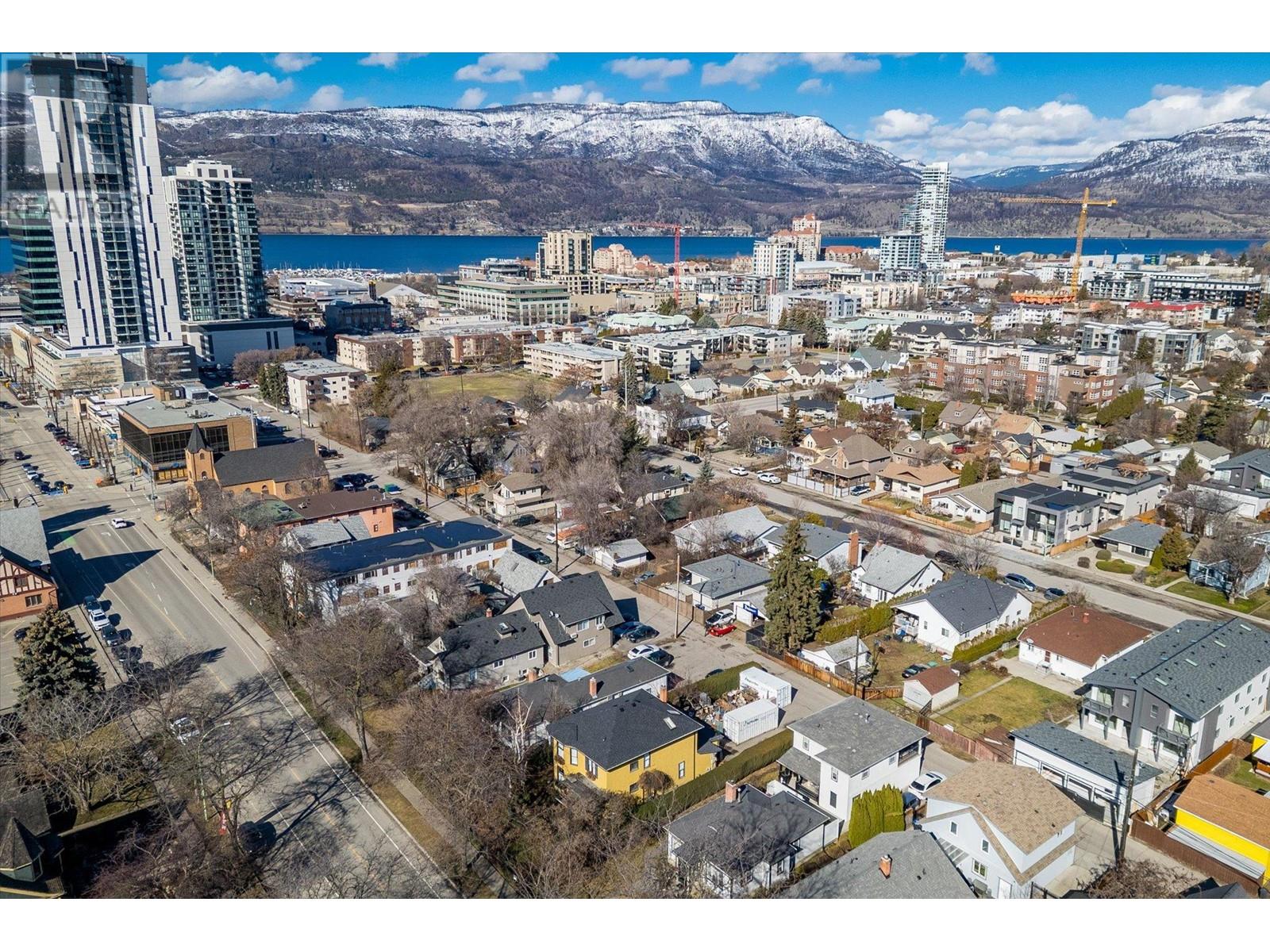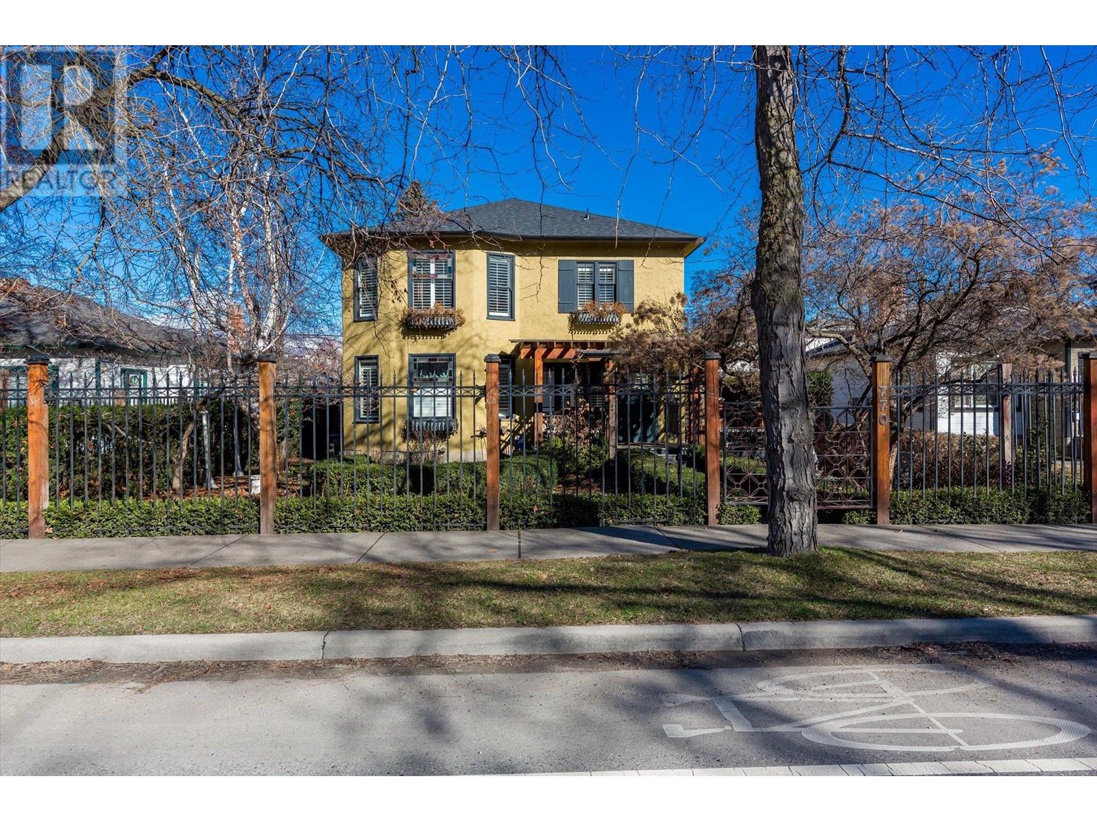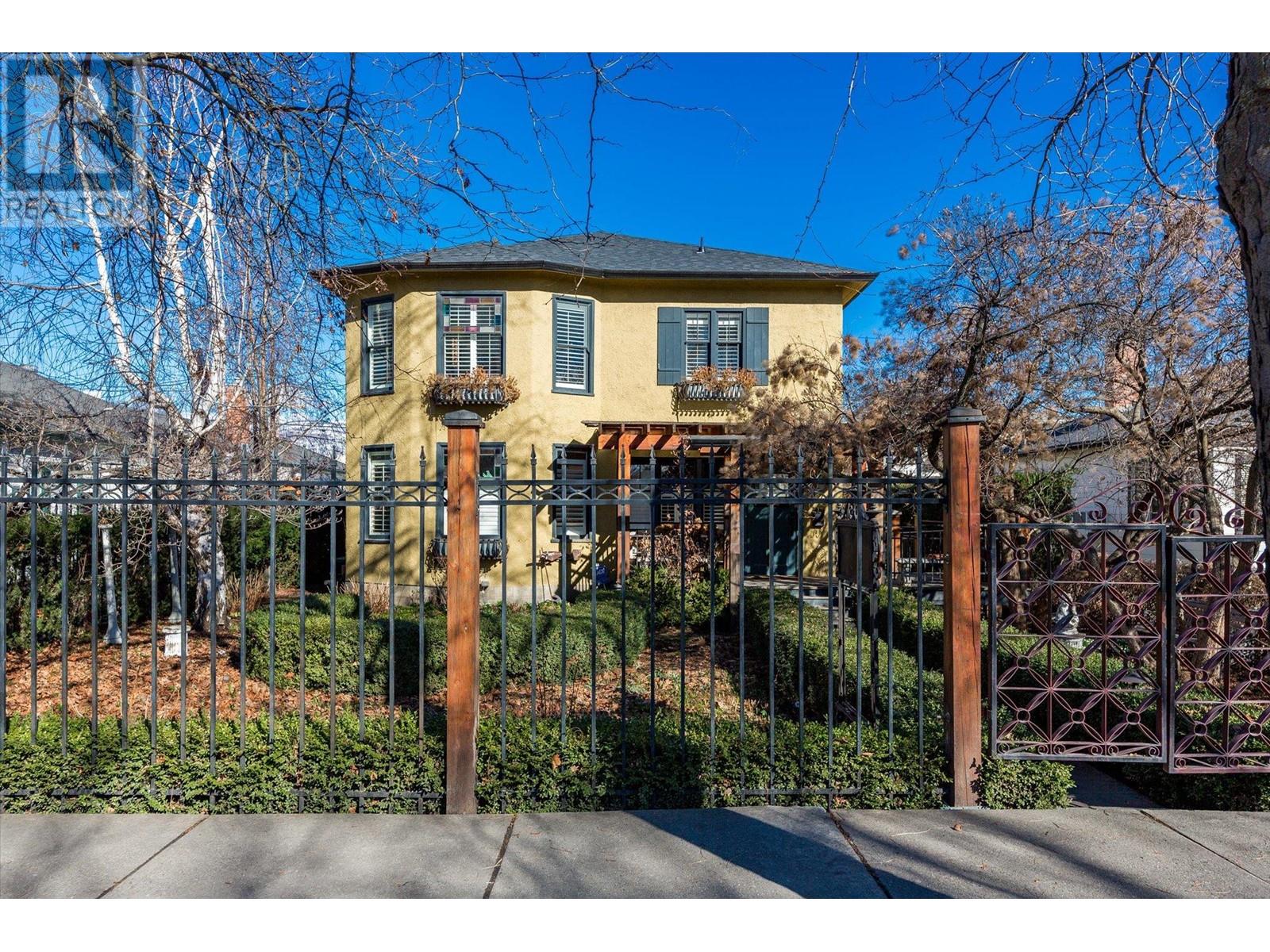 This extraordinary heritage property is perfectly situated on Kelowna’s historical Bernard Avenue one block east of the Downtown Urban Core, a stone’s throw from the sandy shores of Lake Okanagan, world-class wineries and breweries, an international art gallery and a plethora of quaint boutiques and delectable cafes. Significantly renovated in 2009 to house a thriving medical practice, this  commercial and residential property with a Heritage Revitalization Agreement in place, supports over 1400 square feet of commercial use on the main floor, in addition to a fantastic self-contained residential suite that includes 2 bedrooms and a den, a open and bright kitchen with white cabinetry, stainless steel appliances, a sky light and tiled floors. Did we mention there is a new roof? The main level commercial space is beautifully reimagined to include rooms that offer the following uses: a reception area, a room for staff, two patient rooms, washroom, storage/file rooms as well as an office. This thoughtful space boasts polished concrete floors, hardwood floors and expansive windows with superb quality California Shutters that welcomes ample light and inspiring vistas. Please note the added bonus of 6-8 parking stalls with lane access. This is a once in a lifetime opportunity to own the perfect property in the perfect location. Downtown business reinforces professional opportunities and provides  a cultural touchstone for the community. (id:48970)