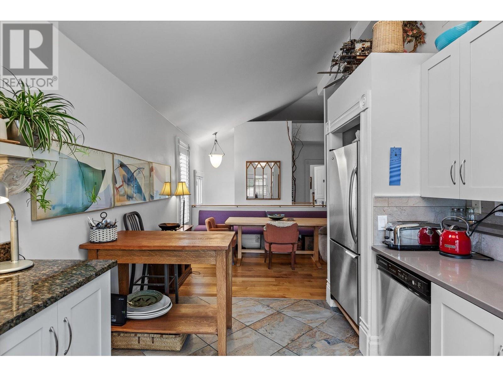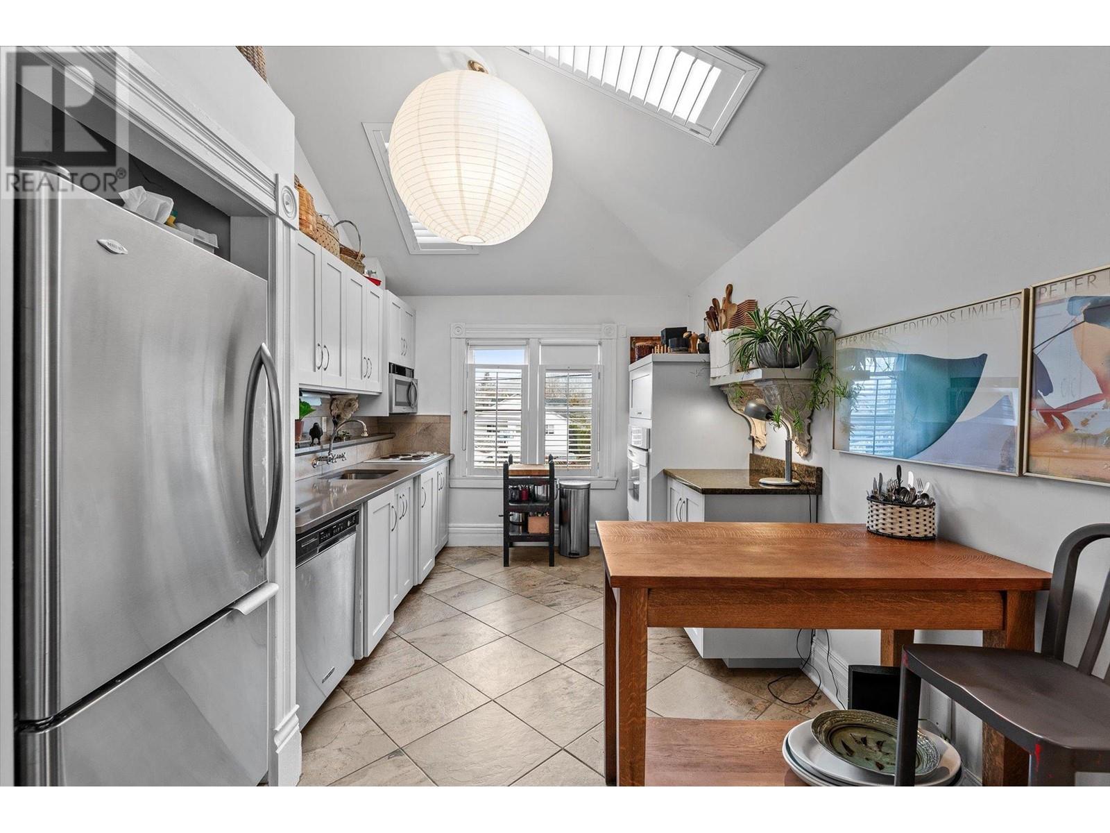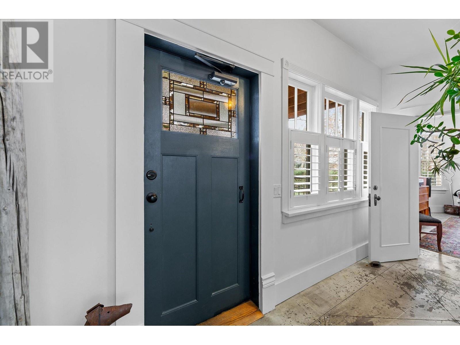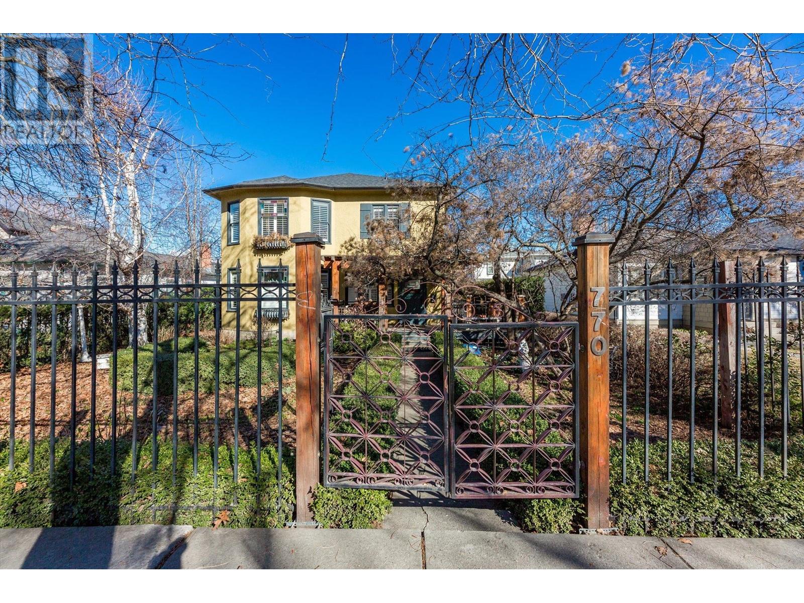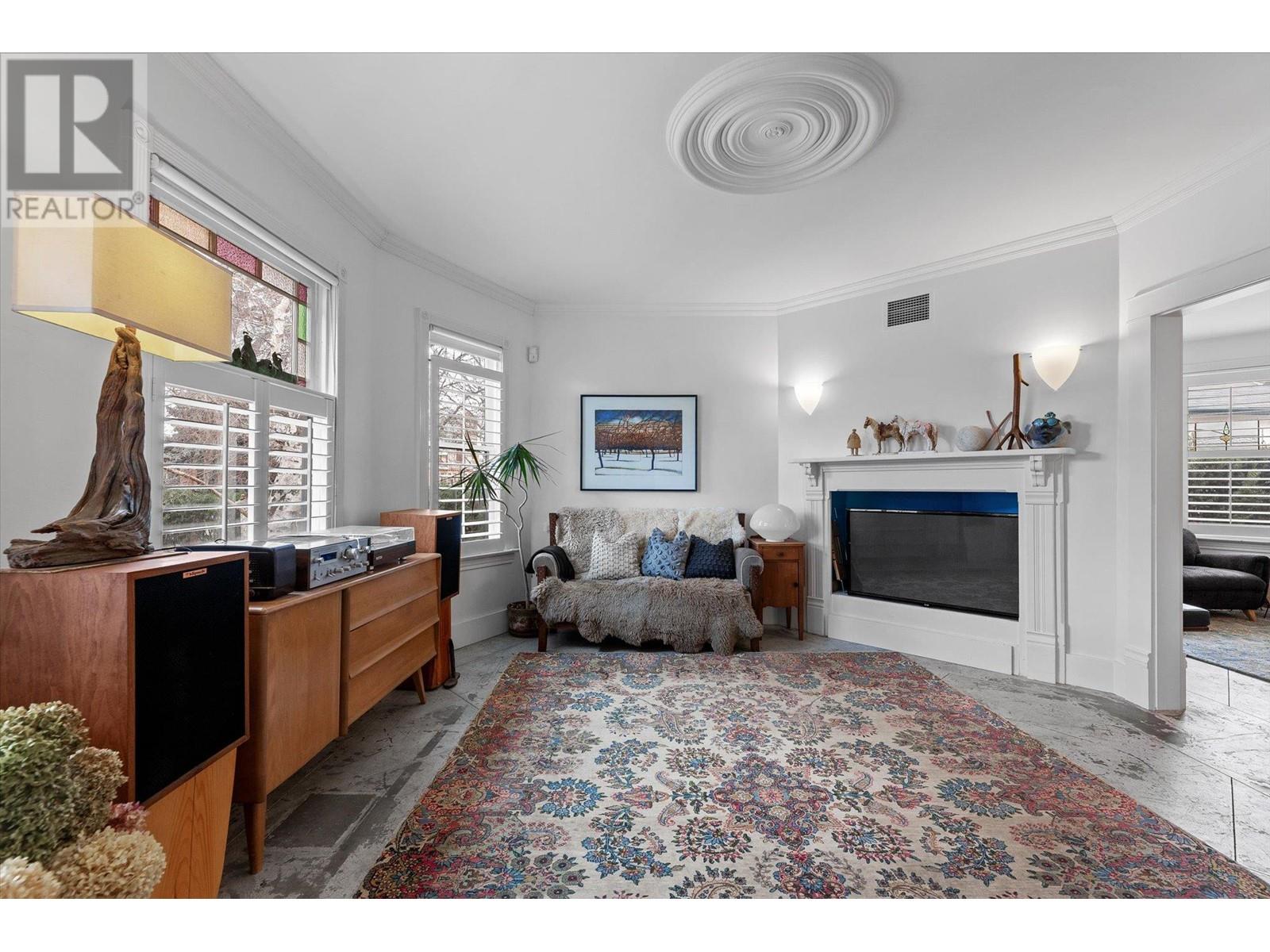 This extraordinary heritage property is perfectly situated on Kelowna’s historical Bernard Avenue one block east of the Downtown Urban Core, a stone’s throw from the sandy shores of Lake Okanagan, world-class wineries and breweries, an international art gallery and a plethora of quaint boutiques and delectable cafes. Significantly renovated in 2009 to house a thriving medical practice, this  commercial and residential property with a Heritage Revitalization Agreement in place, supports over 1400 square feet of commercial use on the main floor, in addition to a fantastic self-contained residential suite that includes 2 bedrooms and a den, a open and bright kitchen with white cabinetry, stainless steel appliances, a sky light and tiled floors. Did we mention there is a new roof? The main level commercial space is beautifully reimagined to include rooms that offer the following uses: a reception area, a room for staff, two patient rooms, washroom, storage/file rooms as well as an office. This thoughtful space boasts polished concrete floors, hardwood floors and expansive windows with superb quality California Shutters that welcomes ample light and inspiring vistas. Please note the added bonus of 6-8 parking stalls with lane access. This is a once in a lifetime opportunity to own the perfect property in the perfect location. Downtown business reinforces professional opportunities and provides  a cultural touchstone for the community. (id:48970)