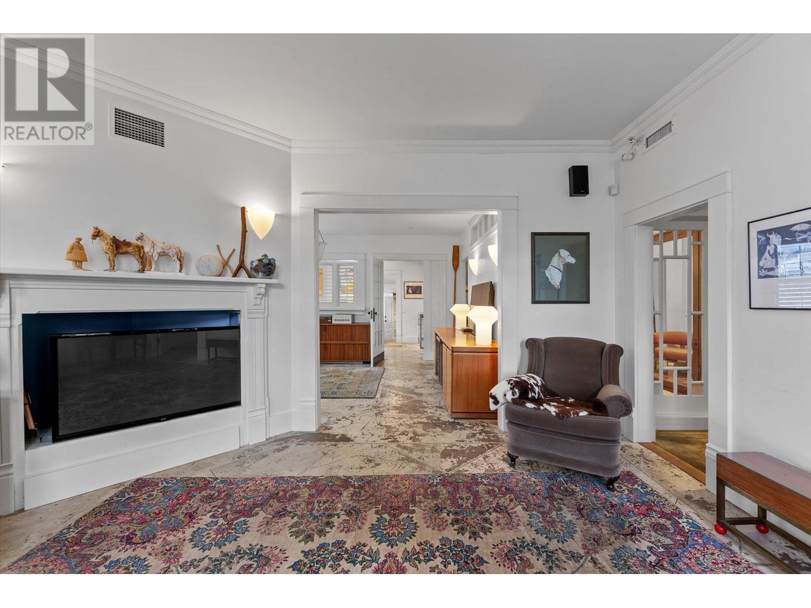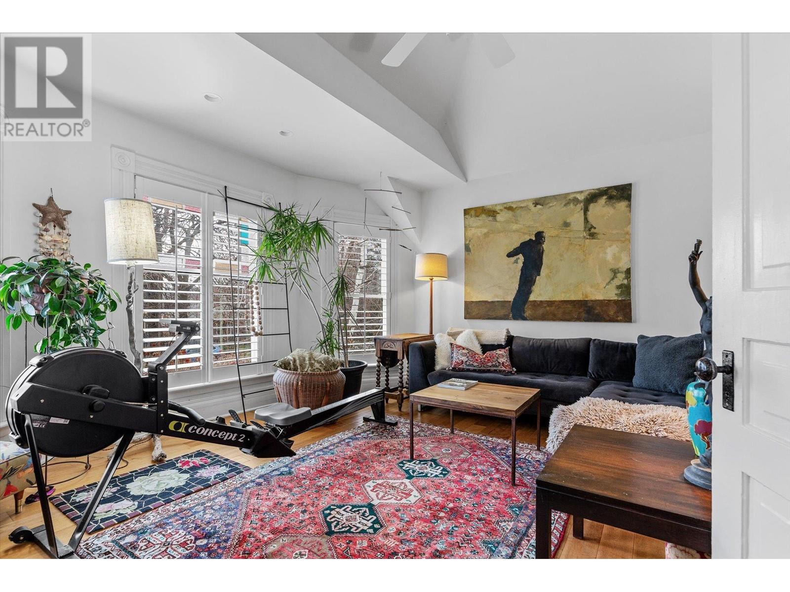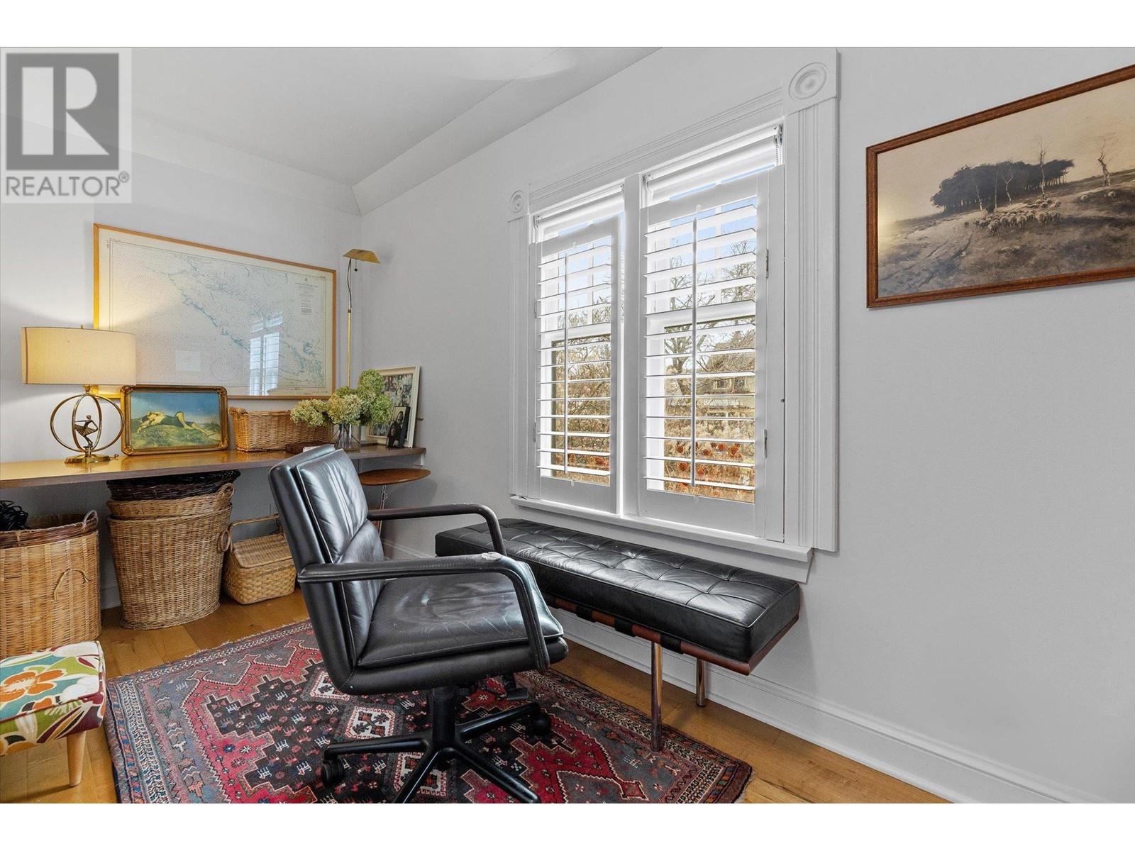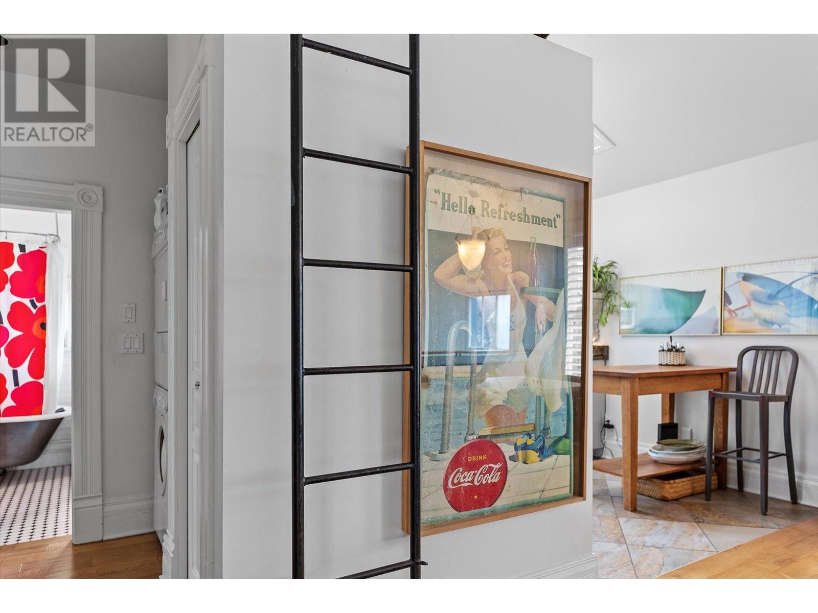 This extraordinary heritage property is perfectly situated on Kelowna’s historical Bernard Avenue one block east of the Downtown Urban Core, a stone’s throw from the sandy shores of Lake Okanagan, world-class wineries and breweries, an international art gallery and a plethora of quaint boutiques and delectable cafes. Significantly renovated in 2009 to house a thriving medical practice, this  commercial and residential property with a Heritage Revitalization Agreement in place, supports over 1400 square feet of commercial use on the main floor, in addition to a fantastic self-contained residential suite that includes 2 bedrooms and a den, a open and bright kitchen with white cabinetry, stainless steel appliances, a sky light and tiled floors. Did we mention there is a new roof? The main level commercial space is beautifully reimagined to include rooms that offer the following uses: a reception area, a room for staff, two patient rooms, washroom, storage/file rooms as well as an office. This thoughtful space boasts polished concrete floors, hardwood floors and expansive windows with superb quality California Shutters that welcomes ample light and inspiring vistas. Please note the added bonus of 6-8 parking stalls with lane access. This is a once in a lifetime opportunity to own the perfect property in the perfect location. Downtown business reinforces professional opportunities and provides  a cultural touchstone for the community. (id:48970)