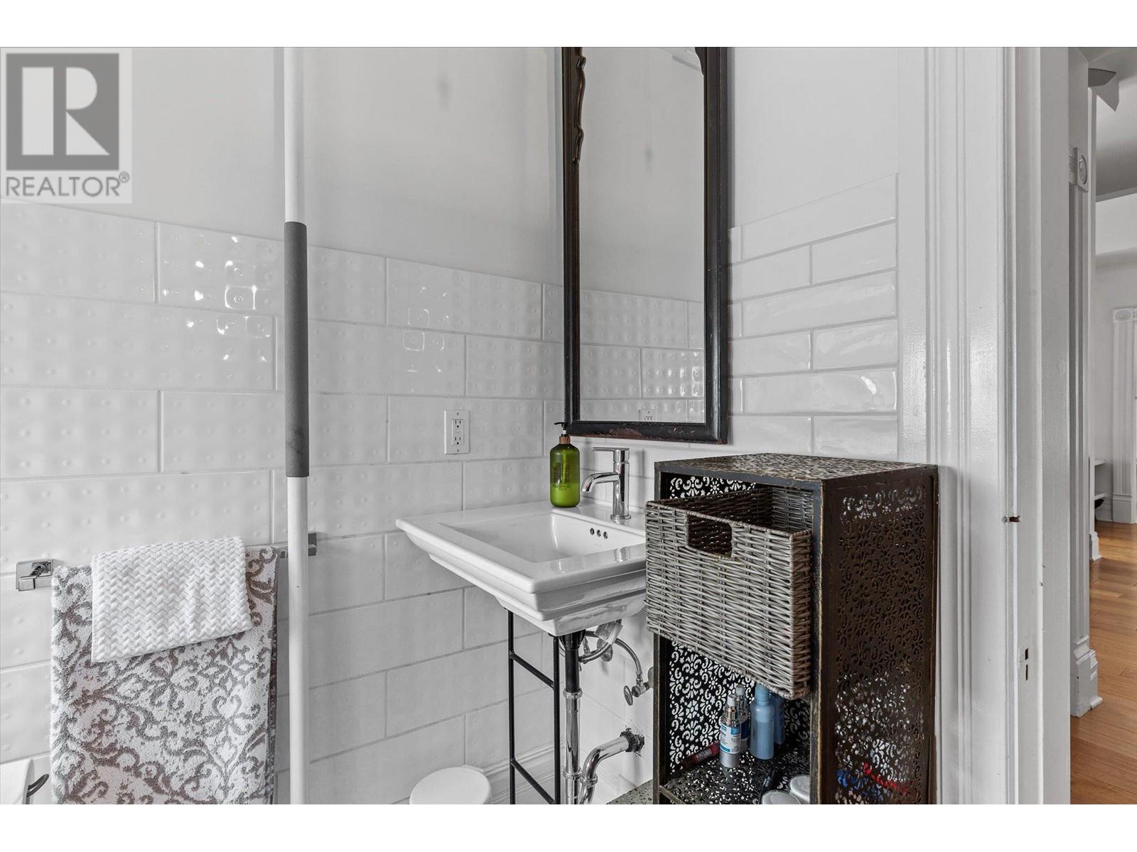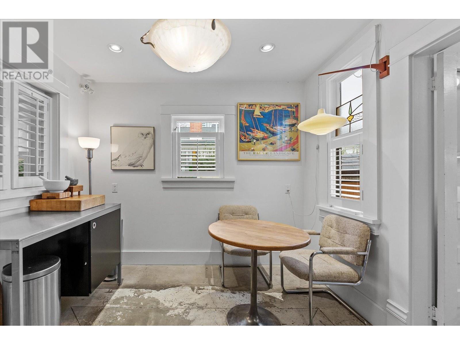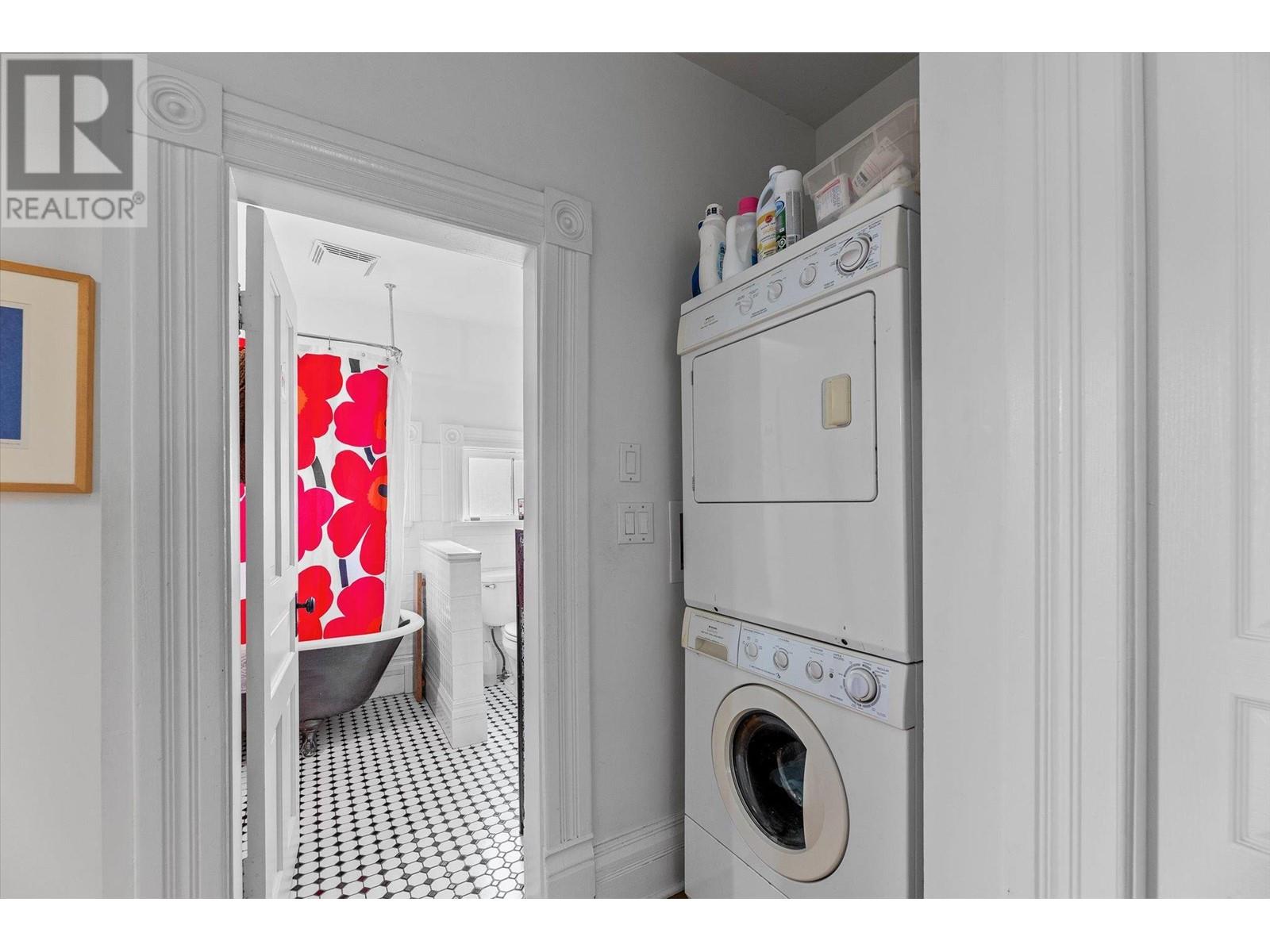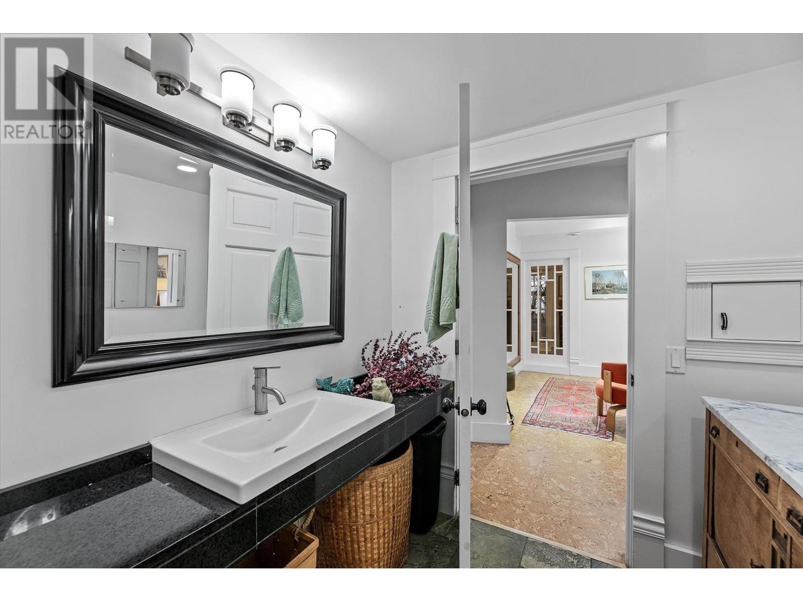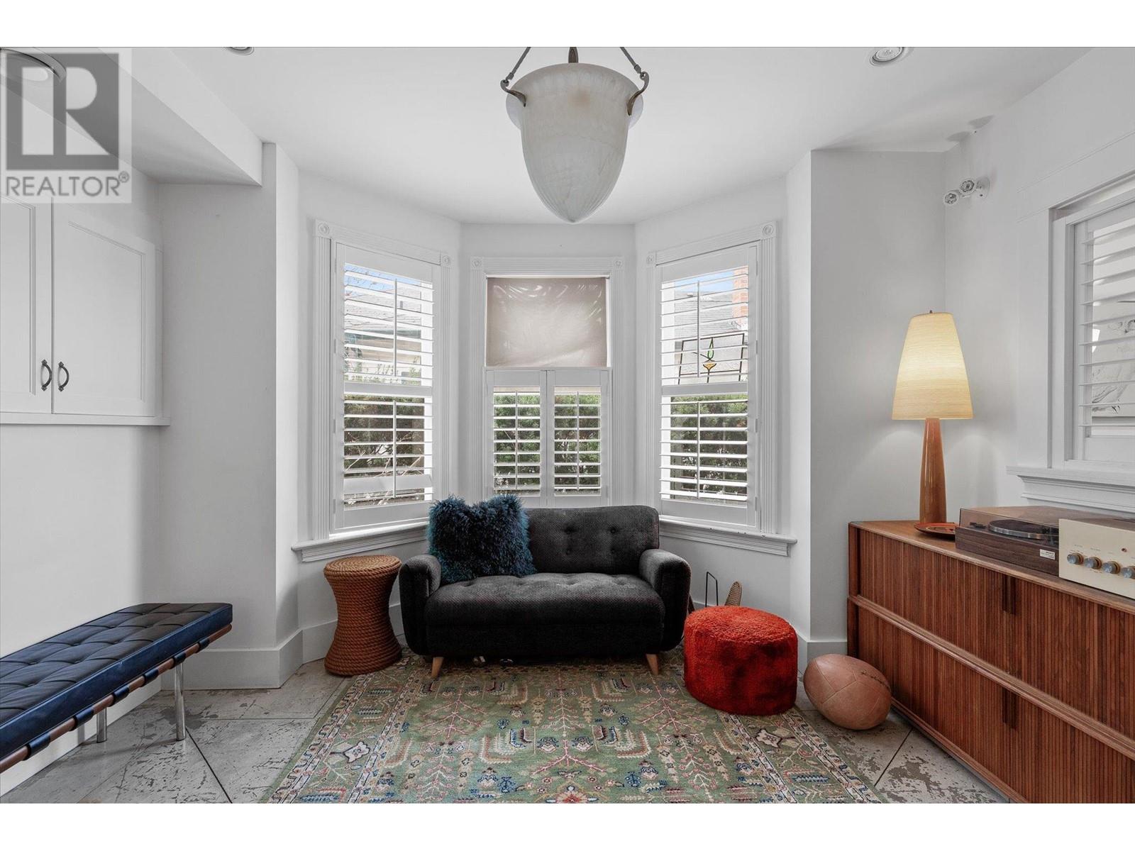 This extraordinary heritage property is perfectly situated on Kelowna’s historical Bernard Avenue one block east of the Downtown Urban Core, a stone’s throw from the sandy shores of Lake Okanagan, world-class wineries and breweries, an international art gallery and a plethora of quaint boutiques and delectable cafes. Significantly renovated in 2009 to house a thriving medical practice, this  commercial and residential property with a Heritage Revitalization Agreement in place, supports over 1400 square feet of commercial use on the main floor, in addition to a fantastic self-contained residential suite that includes 2 bedrooms and a den, a open and bright kitchen with white cabinetry, stainless steel appliances, a sky light and tiled floors. Did we mention there is a new roof? The main level commercial space is beautifully reimagined to include rooms that offer the following uses: a reception area, a room for staff, two patient rooms, washroom, storage/file rooms as well as an office. This thoughtful space boasts polished concrete floors, hardwood floors and expansive windows with superb quality California Shutters that welcomes ample light and inspiring vistas. Please note the added bonus of 6-8 parking stalls with lane access. This is a once in a lifetime opportunity to own the perfect property in the perfect location. Downtown business reinforces professional opportunities and provides  a cultural touchstone for the community. (id:48970)