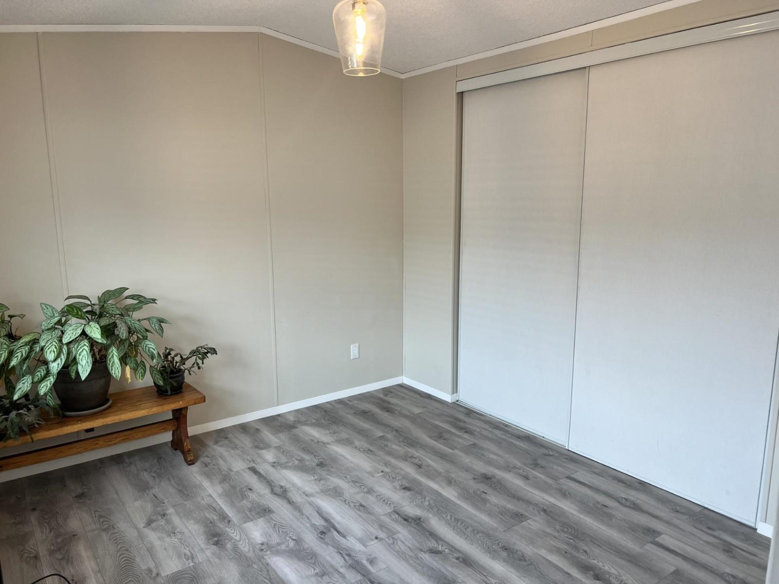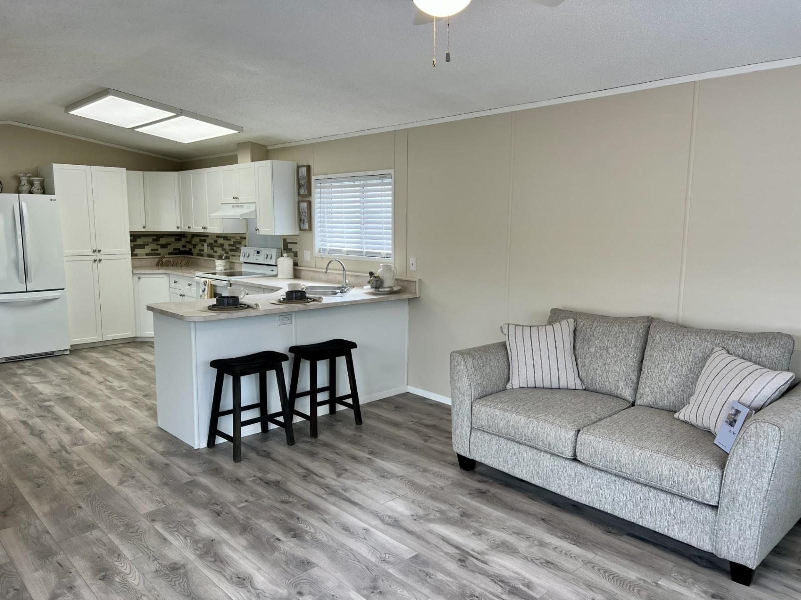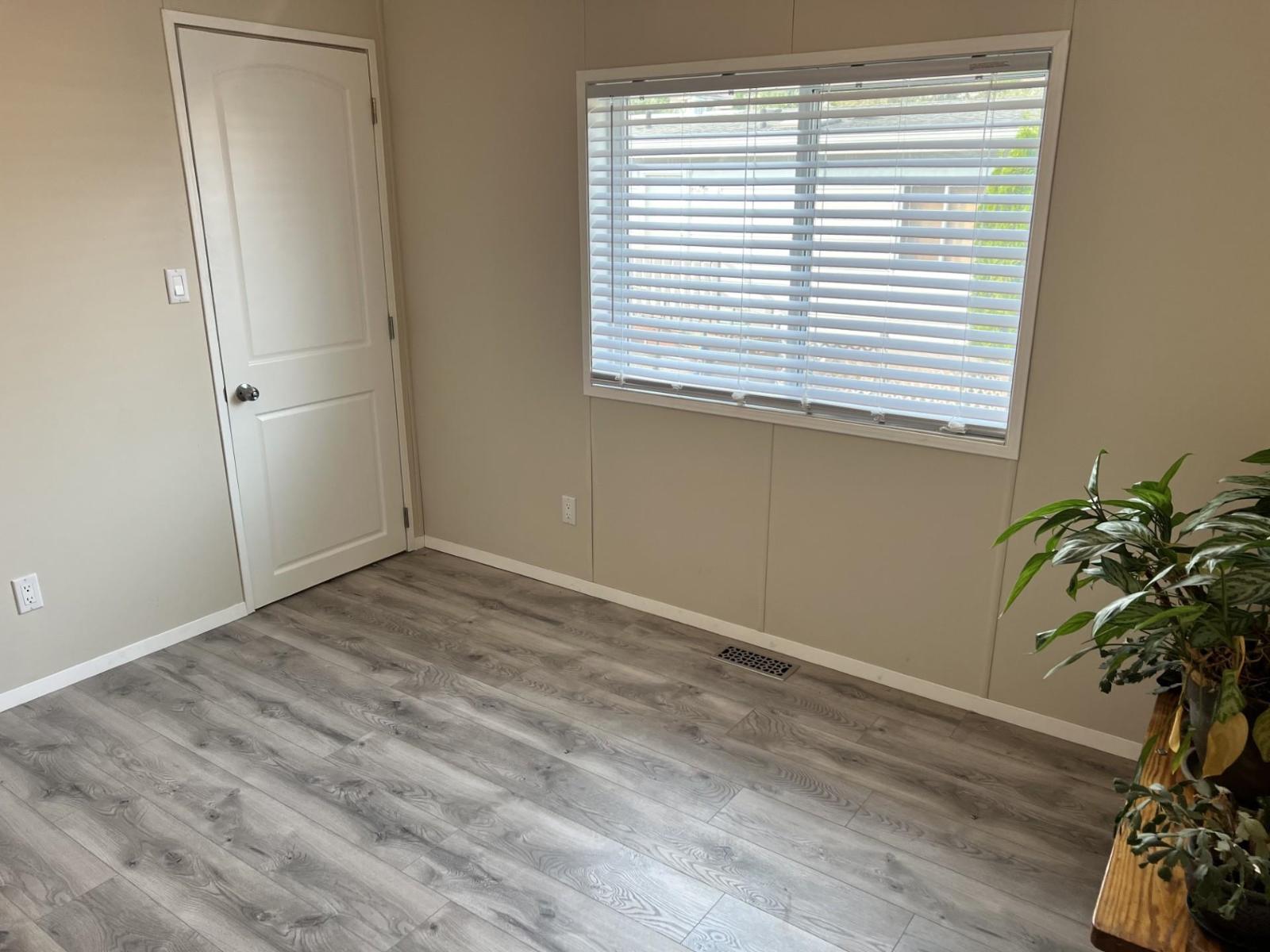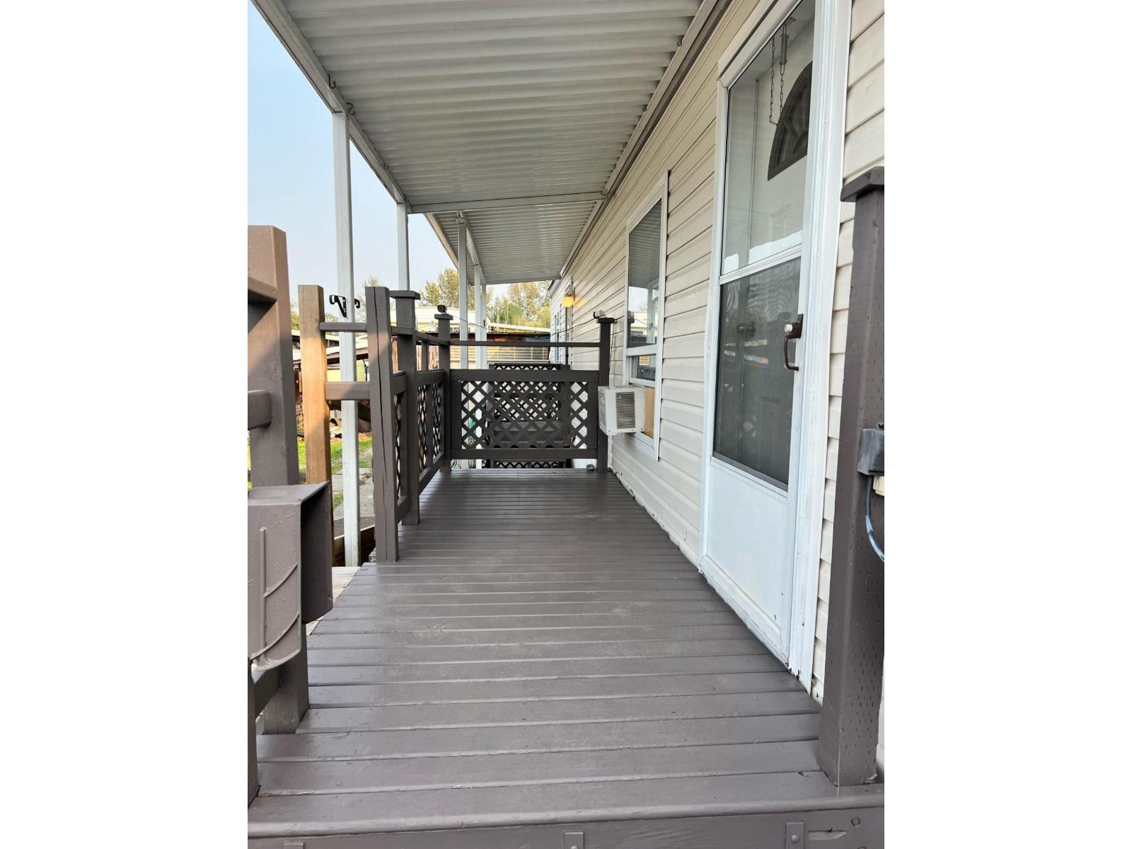 Welcome to Georgian Park, Abbostford's premier 55+ mobile home community. Conveniently located near shopping, transit, walking trails and highway access. Home number 94 is a single wide home on a double wide lot situated in the middle of the community on one of the most sought after middle streets with minimal traffic. This newly renovated 2 bedroom home boasts all new 15mm laminate planking throughout, fresh neutral wall paint, brand new custom kitchen cabinet doors with tile backsplash, brand new decora light switches & plugs. All new LED lighting, fixtures & new window coverings throughout. Updated bathroom with new toilet, newer vanity. Large multi level newly painted decking with wheelchair accessible ramp. Very large 26' x 9' enclosed storage shed/workshop with separate electrical panel & 240volt plug. This home would allow a separate add on living space with management approvals & city permits. 2 small pets allowed, park management approval required to purchase this move in ready home. (id:48970)