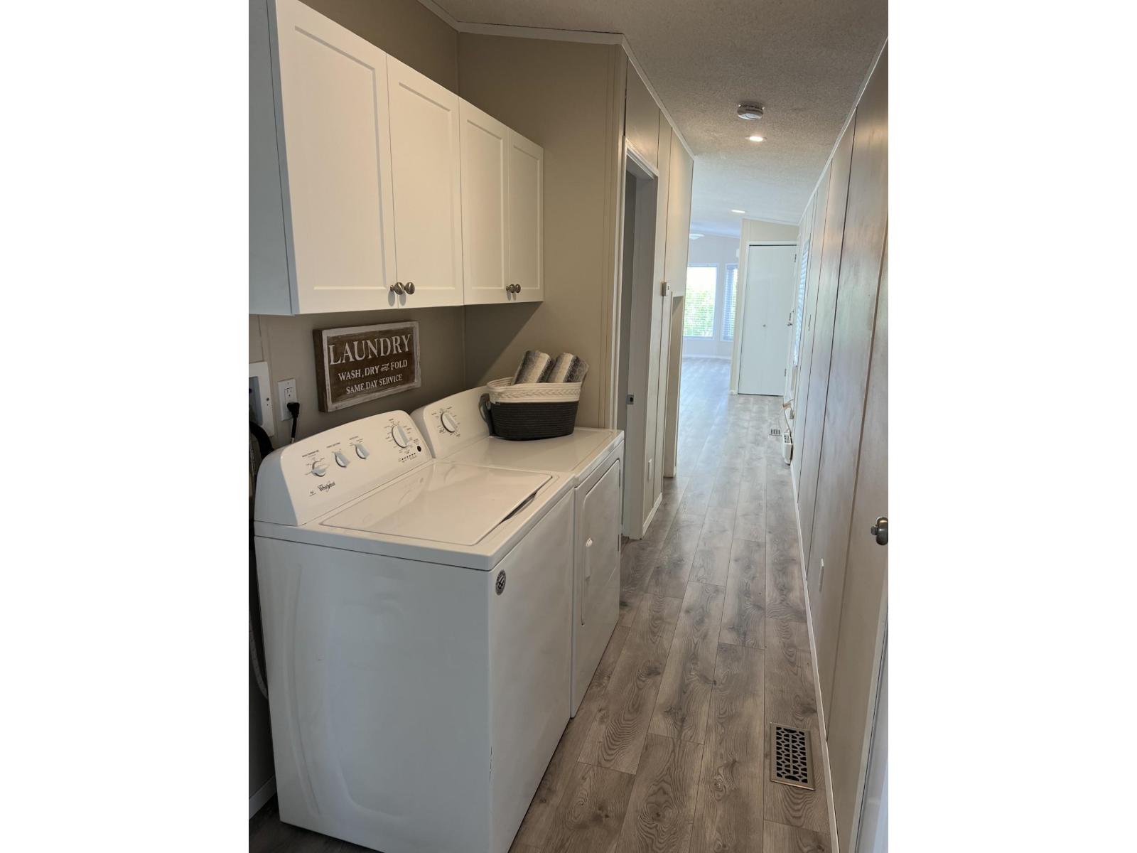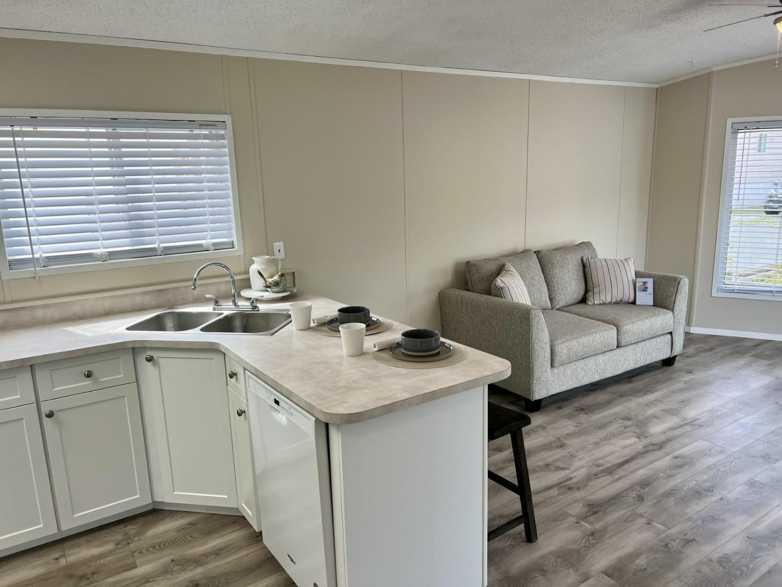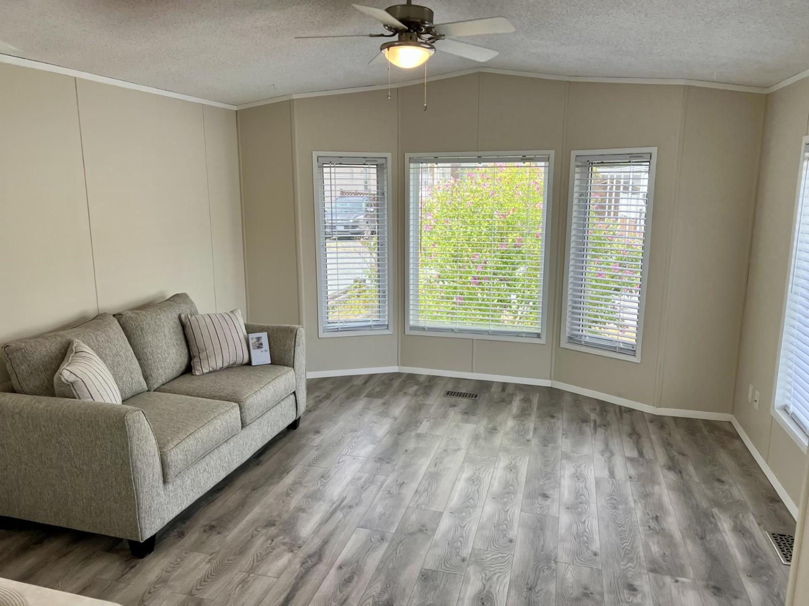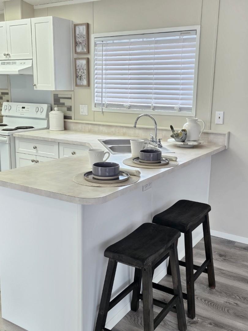 Welcome to Georgian Park, Abbostford's premier 55+ mobile home community. Conveniently located near shopping, transit, walking trails and highway access. Home number 94 is a single wide home on a double wide lot situated in the middle of the community on one of the most sought after middle streets with minimal traffic. This newly renovated 2 bedroom home boasts all new 15mm laminate planking throughout, fresh neutral wall paint, brand new custom kitchen cabinet doors with tile backsplash, brand new decora light switches & plugs. All new LED lighting, fixtures & new window coverings throughout. Updated bathroom with new toilet, newer vanity. Large multi level newly painted decking with wheelchair accessible ramp. Very large 26' x 9' enclosed storage shed/workshop with separate electrical panel & 240volt plug. This home would allow a separate add on living space with management approvals & city permits. 2 small pets allowed, park management approval required to purchase this move in ready home. (id:48970)