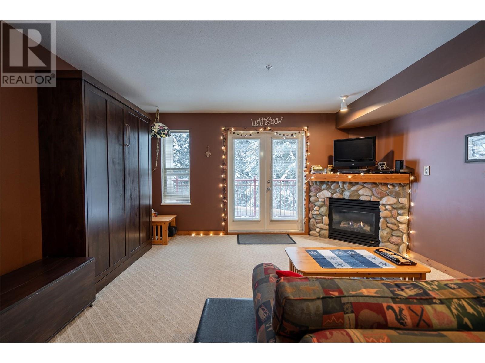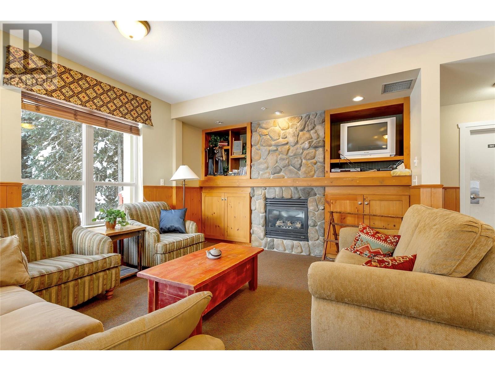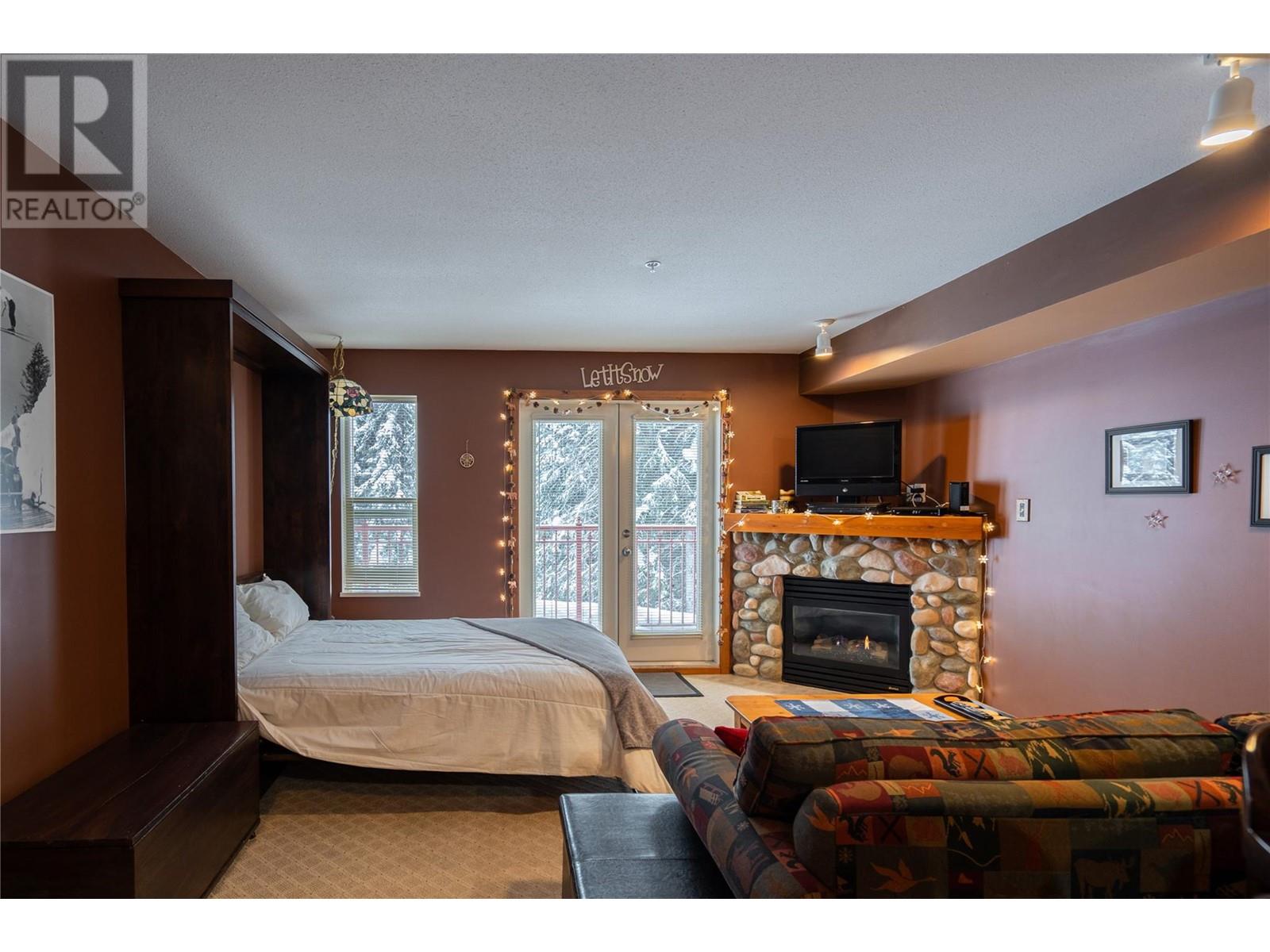 Welcome to your ideal mountain getaway! This charming studio suite is perfectly positioned at the base of the Silver Queen Chair lift… it’s a ski in/ ski out location, and just steps away from Tube Town, Tube Town Cafe & Bar, and the picturesque skating pond. A short walk takes you to the quaint Silver Star Village, where you can explore a variety of restaurants and unique shops. This studio is ready for you to enjoy this ski season, featuring a full bathroom and a well-equipped kitchen with 4 stool bar counter, ideal for preparing meals after a day on the slopes. The spacious living area includes a Murphy bed and a pull-out sofa. The stone-surrounded gas fireplace adds a warm and inviting touch, perfect for relaxing after a day of adventures. Step out onto your large private deck, where you can unwind while taking in views of the trails and surrounding forest. It’s an ideal space to soak up the fresh mountain air. This building offers fantastic communal features, including a shared hot tub for post-ski relaxation, a shared kitchen and common area that’s perfect for hosting larger gatherings. You’ll also benefit from on-site laundry facilities and your own ski locker for convenient storage. This studio suite is not just a property; it's a lifestyle. Don’t miss the chance to make it your own and create unforgettable memories all 4 seasons of the year. Schedule a viewing today and start your next adventure at Silver Star! For more details or to arrange a tour, call us today! (id:48970)