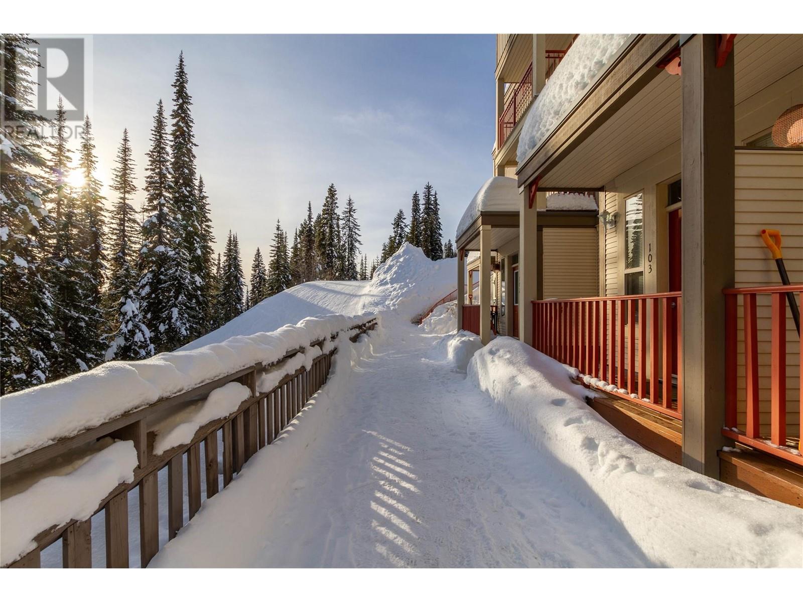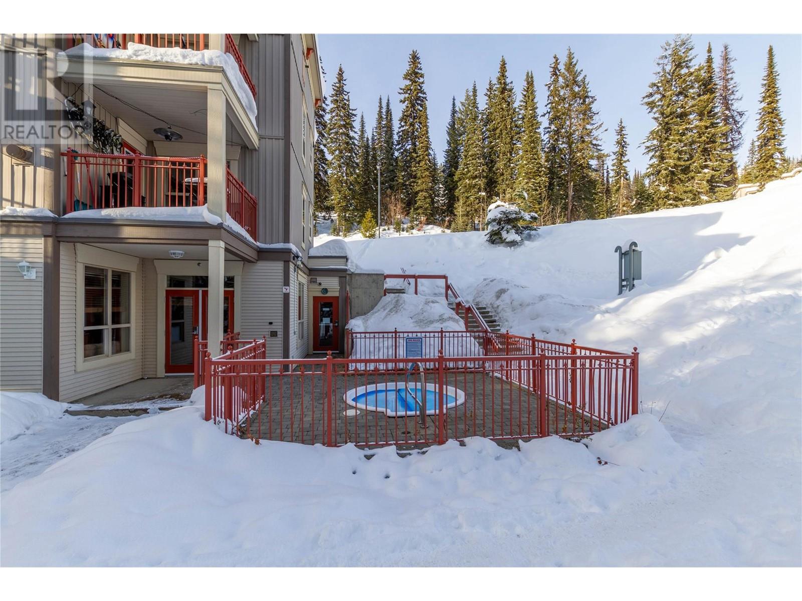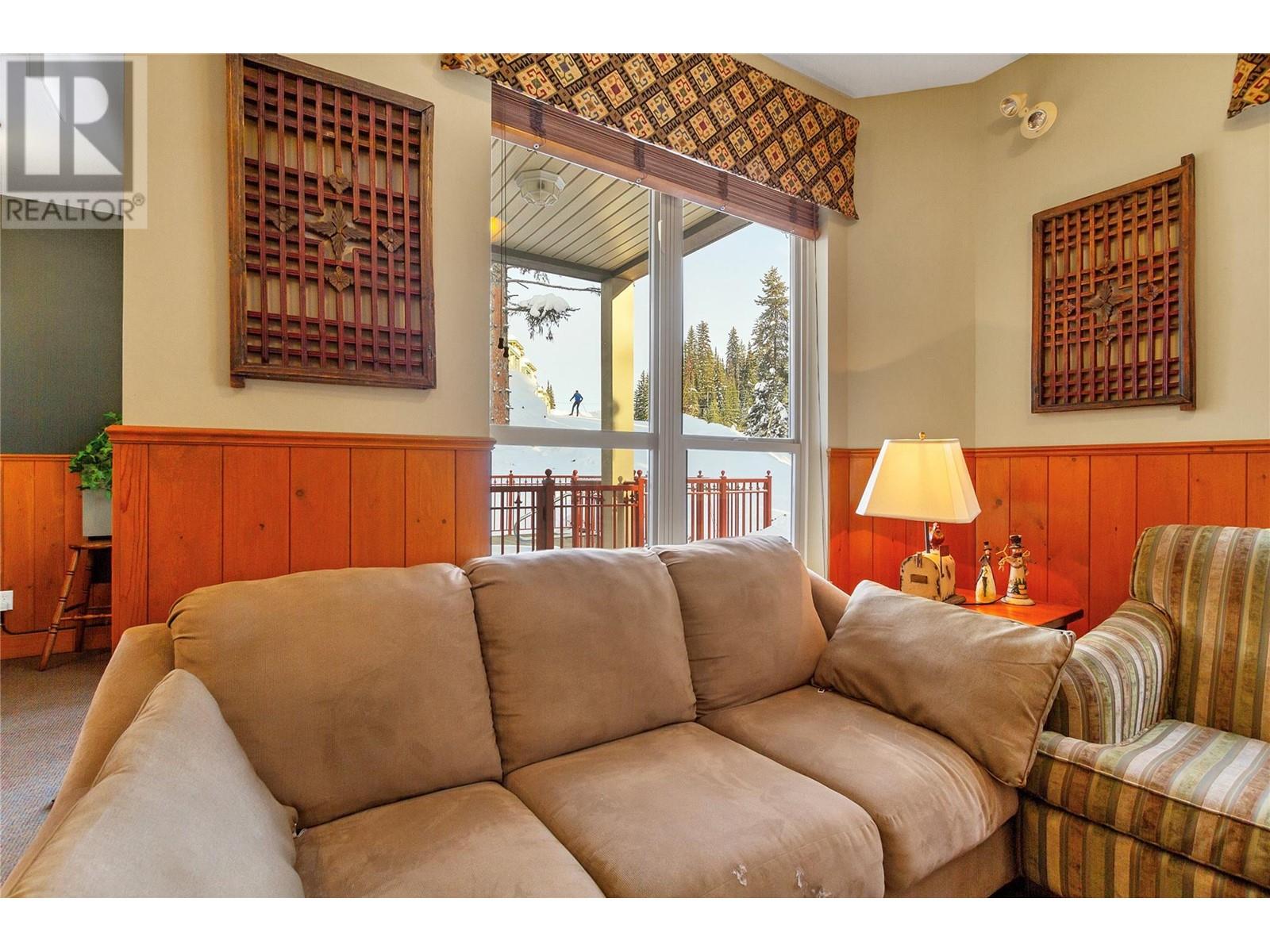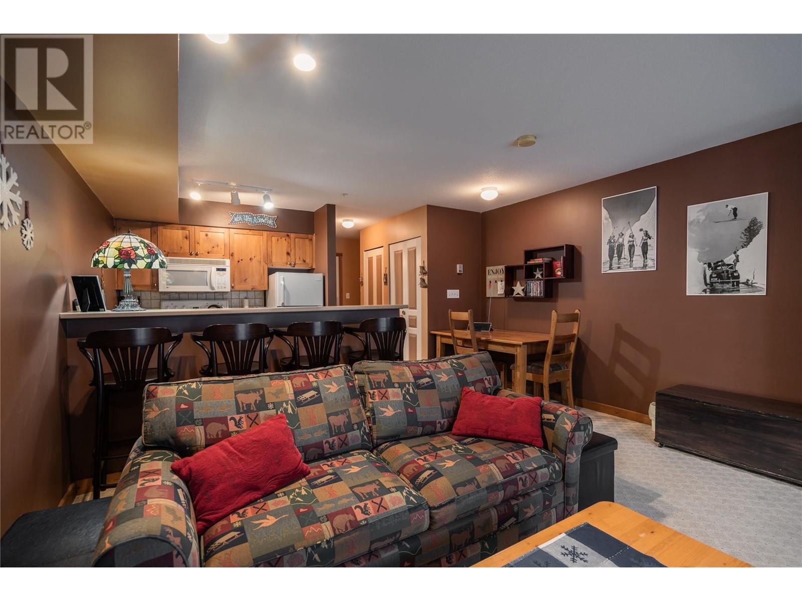 Welcome to your ideal mountain getaway! This charming studio suite is perfectly positioned at the base of the Silver Queen Chair lift… it’s a ski in/ ski out location, and just steps away from Tube Town, Tube Town Cafe & Bar, and the picturesque skating pond. A short walk takes you to the quaint Silver Star Village, where you can explore a variety of restaurants and unique shops. This studio is ready for you to enjoy this ski season, featuring a full bathroom and a well-equipped kitchen with 4 stool bar counter, ideal for preparing meals after a day on the slopes. The spacious living area includes a Murphy bed and a pull-out sofa. The stone-surrounded gas fireplace adds a warm and inviting touch, perfect for relaxing after a day of adventures. Step out onto your large private deck, where you can unwind while taking in views of the trails and surrounding forest. It’s an ideal space to soak up the fresh mountain air. This building offers fantastic communal features, including a shared hot tub for post-ski relaxation, a shared kitchen and common area that’s perfect for hosting larger gatherings. You’ll also benefit from on-site laundry facilities and your own ski locker for convenient storage. This studio suite is not just a property; it's a lifestyle. Don’t miss the chance to make it your own and create unforgettable memories all 4 seasons of the year. Schedule a viewing today and start your next adventure at Silver Star! For more details or to arrange a tour, call us today! (id:48970)
