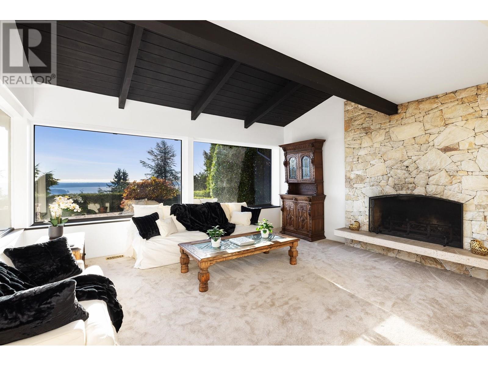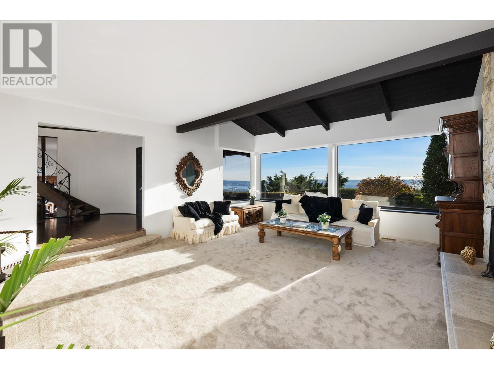 Breathtaking 180 degree Panoramic Ocean views from this Stunning King George's Majestic Estate. Commanding Birds Eye Views & Prime Golden Mile Location. Just over 1/2 an acre, this spacious 2 lvl 4,300 sqft residence, perfect for renovating or building a Modern Luxury Dream Home. Main floor features an elevator leading to 5 generous bedrooms & 3 bathrooms, ideal for family living. Entertain in style with vaulted ceilings, grand staircase entrance & exquisite hand-hewn hardwood floors. 4 Fireplaces tiled floors & new carpets. Every living space & bedroom offers unobstructed commanding south facing ocean views. Originally built by a Warner Brothers cartoonist/designer, this Tuscany-inspired solid built home reflects Southern California's Iconic Mediterranean Architecture. Conveniently located near top Public & Private schools, Hollyburn Country Club, Capilano Golf Club and 3 Ski Hills. Park Royal, Beaches/Seawall, Restaurants just down the hill. Easy access to downtown. Priced $1.4 million below assessed value. (id:48970)